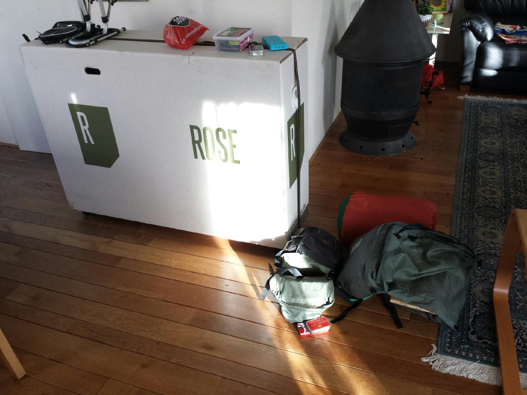 Klaar voor vertrek 2015-01-03 Page content Alles verpakt in een speciale doos voor fietsen, klaar om op Schiphol op de band te gooien.